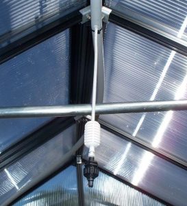 几乎所有套件包括某种通风口,允许空气在温室变得太热时流出 - 最肯定会。通风口通常安装在屋顶板中,但也可以位于山墙端壁上。最好的通风口配备了一个充满气体的活塞,可根据温室的内部温度自动打开和关闭。